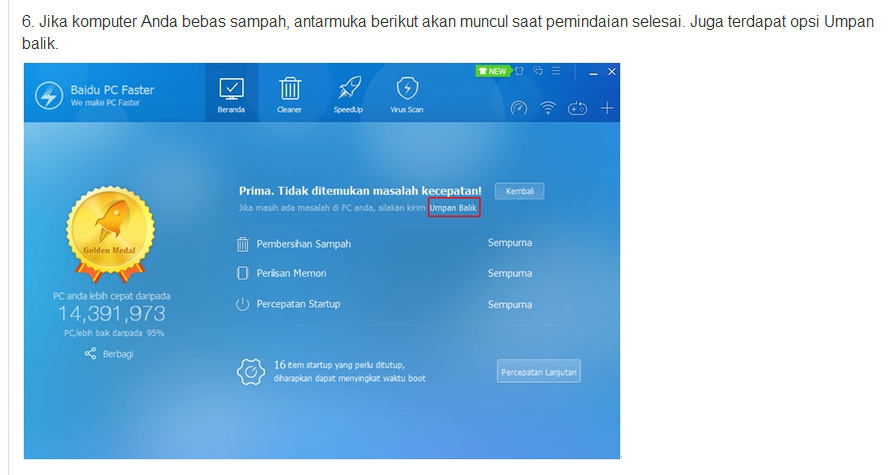 Judul Tugas Kali ini adalah "Pengalaman Fitur Pembersihan Beranda Baidu PC Faster"