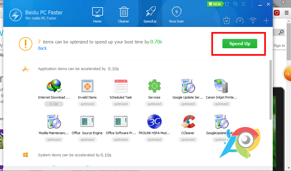 4. Tunggu proses selesai.dan kamu akan dihadapkan lagi tampilan seperti gambar berikut. Terus, kamu klik saja "Speed Up".