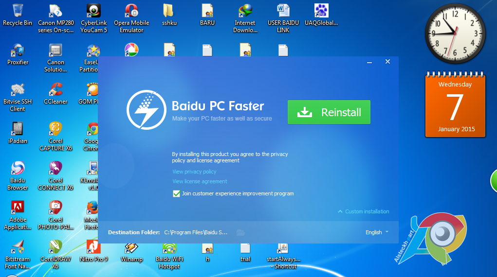 2. Seteah selesai, buka dan jalankan SpeedUP Baidu PC Faster tadi. Install SpeedUP PC Faster-nya, tunggu hingga proses selesai ya. :)